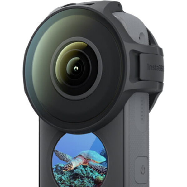 Protect your ONE X2 camera lenses when using the camera underwater with these Premium Lens Guards from Insta360. The lens guard assembly wraps around the camera to cover both lenses with glass covers, and it locks with a secure latch. It is made from lightweight plastic and can protect both lenses up to 32.8' underwater without interfering with the lens view. A fabric storage bag is included to store and transport the lens guards.