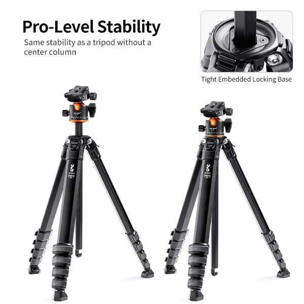 Special-shaped Compact Design K&F Concept Mutate Series Tripod features a compact & portable body as its fold size is less than 500mm/20″ and ultra lightweight at 1819g/4lbs. Fold diameter is less than the volume of regular water bottle. No matter for travel and work, the tripod’s compact design makes it easy to fit in any camera bag, or luggage.